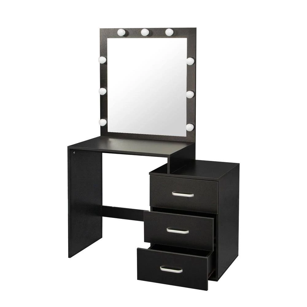 - White dressing table with 9 LED light bulb mirrors, modern dressing table set with 3 bedroom drawers.