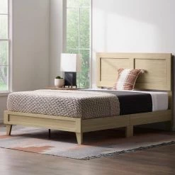 Isla Queen Upholstered Wingback Wood Platform Bed Frame by Brookside