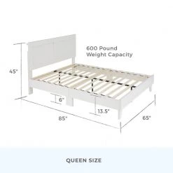 Penny White Wood Frame Queen Platform Bed with Double Framed Wood Headboard by Brookside