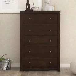 Solid Wood Chest of Drawers in Dark Brown with 5 Drawers(29.00″W x 16.00″D x 45.00″H) by Polibi