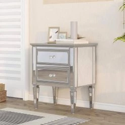 Modern Silver Finished End Table, Nightstand with 2 Drawers by Polibi