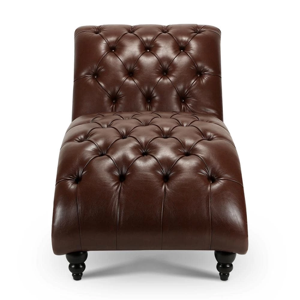 - Featuring beautiful button tufting, diamond stitching, and elegant turned legs, this chaise lounge is the perfect spot to stretch out in relaxation
