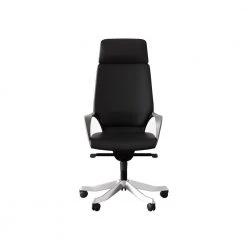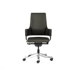Eastside Adjustable Height High Back Office Chair, Grey Genuine Leather Chair by Nyhus
