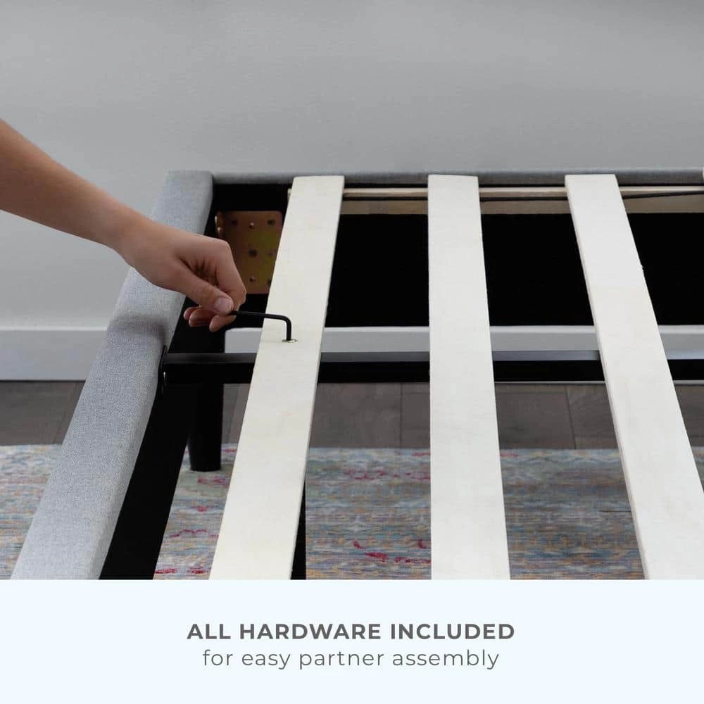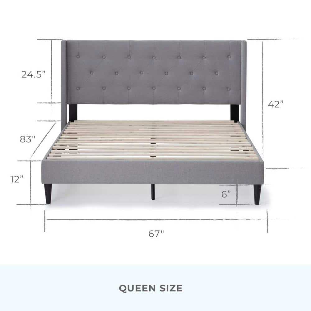 - NO NEED FOR A BOX SPRING -This upholstered queen bed has thick side rails and wooden slats to support your queen mattress with or without a box spring
