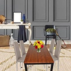 45.50 in. L Rectangle Brown Wood Top Farmhouse Rustic Style Dining Table with X-shape Legs by Polibi