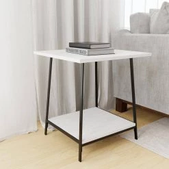 Eliza 22 in. White Oak Rectangle Metal and Wood End Table with Storage Shelf by Brookside