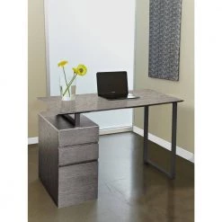 52 in. x 30 in. Grey Ash / Black Metal Legs Home Office Executive Desk with Power Grommets by Nyhus
