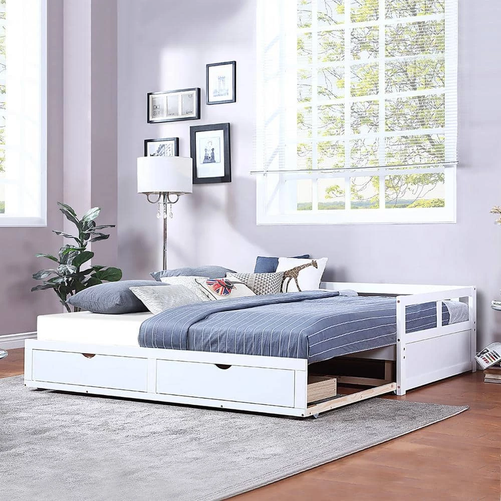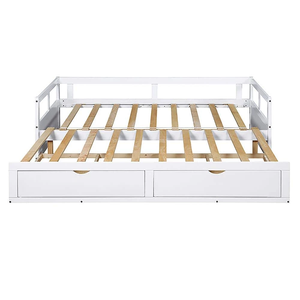 - When the trundle is pulled apart, this daybed can be expanded from twin size to King size.The twin size is suitable for children or daily use, but when the guests arrive, King size is the best choice.