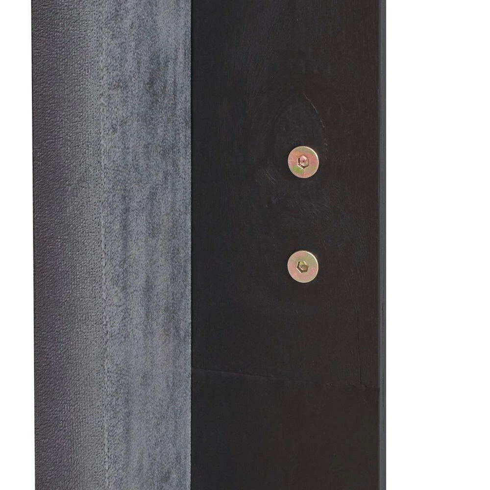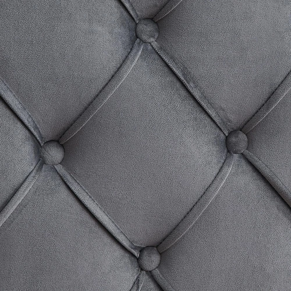 - Faux fabric with button-tufted headboard detailing adds timeless